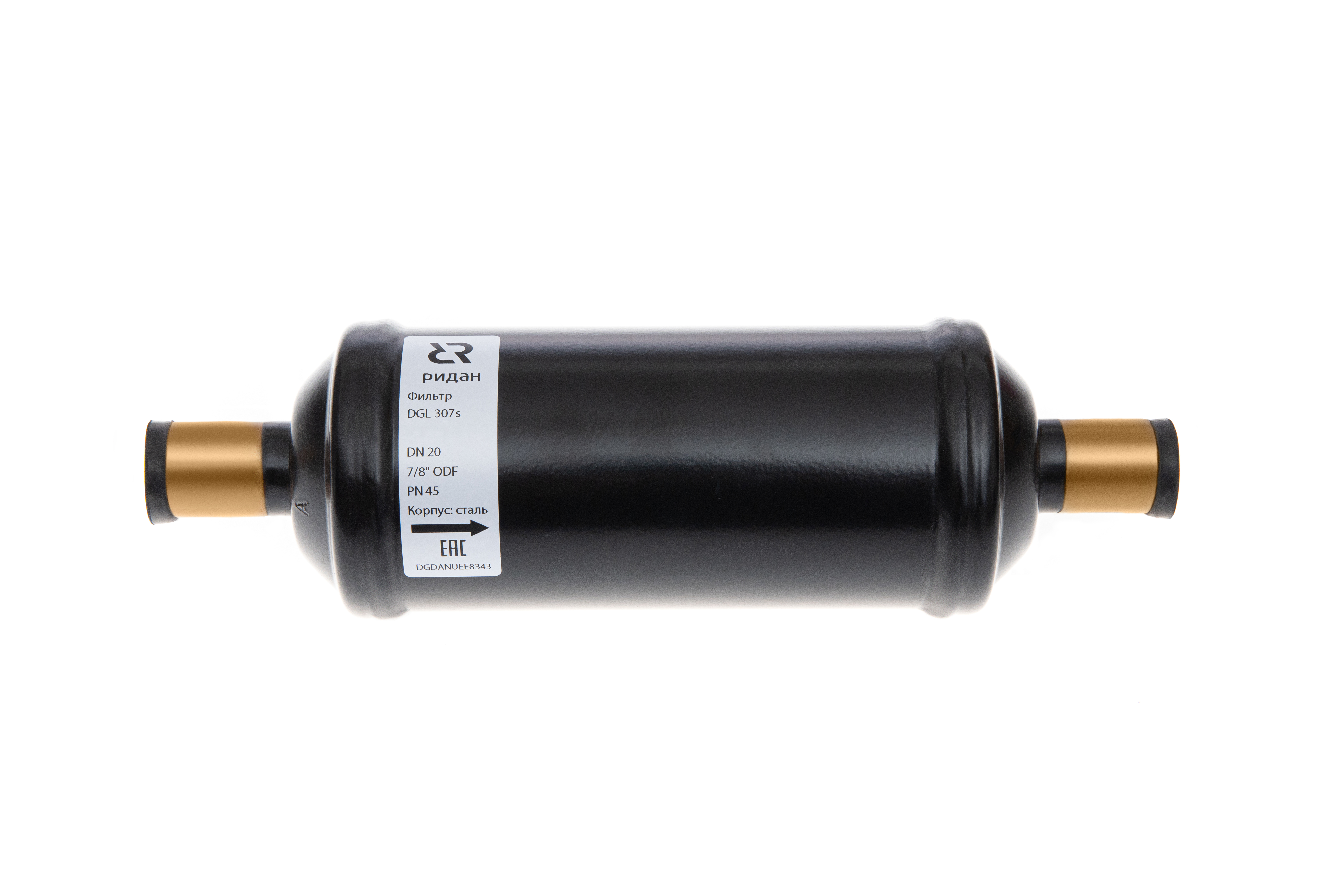 Ридан 023B8024R — Герметичный фильтр-осушитель с шариковой засыпкой DGL 306s, присоединительные патрубки 3/4", под пайку