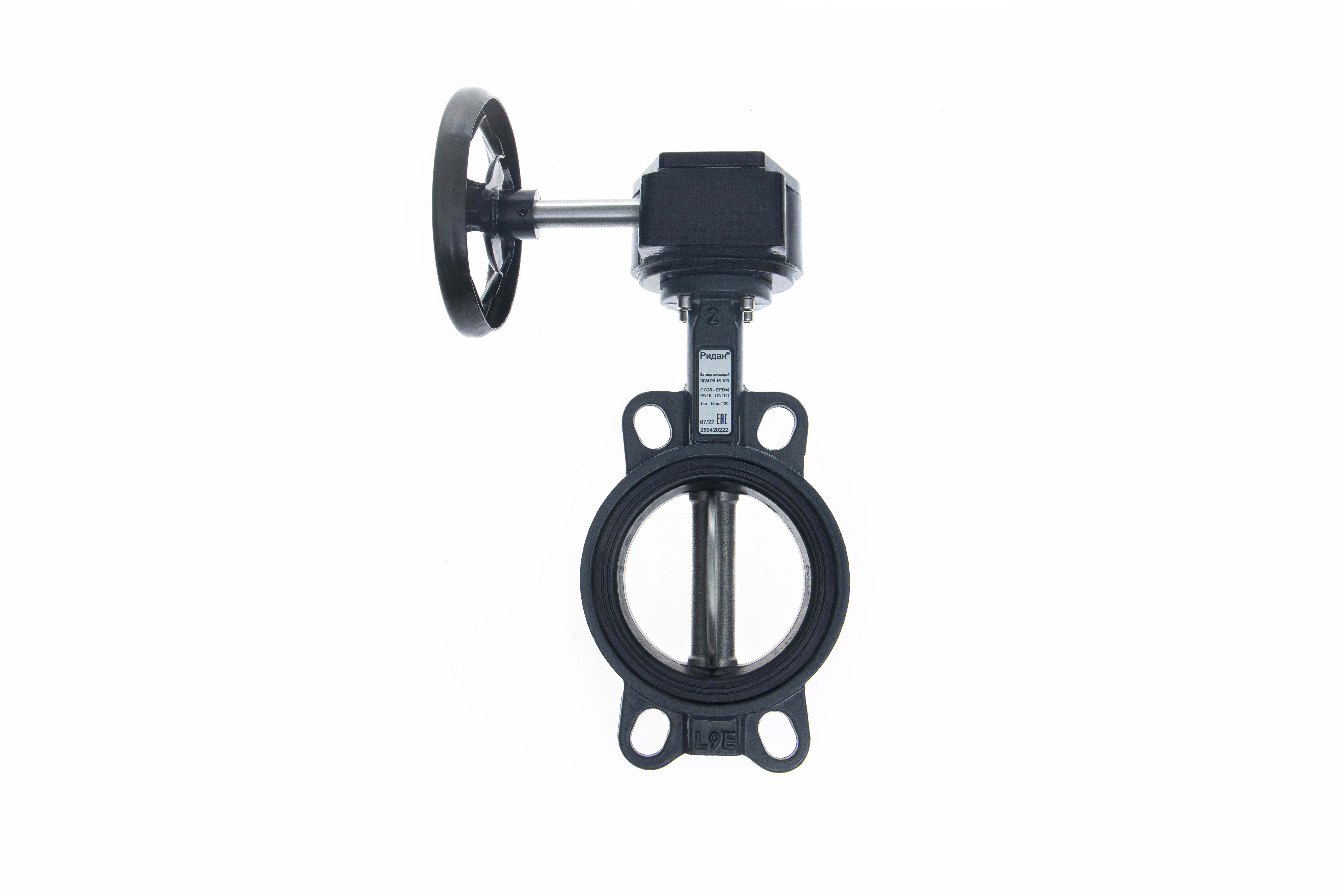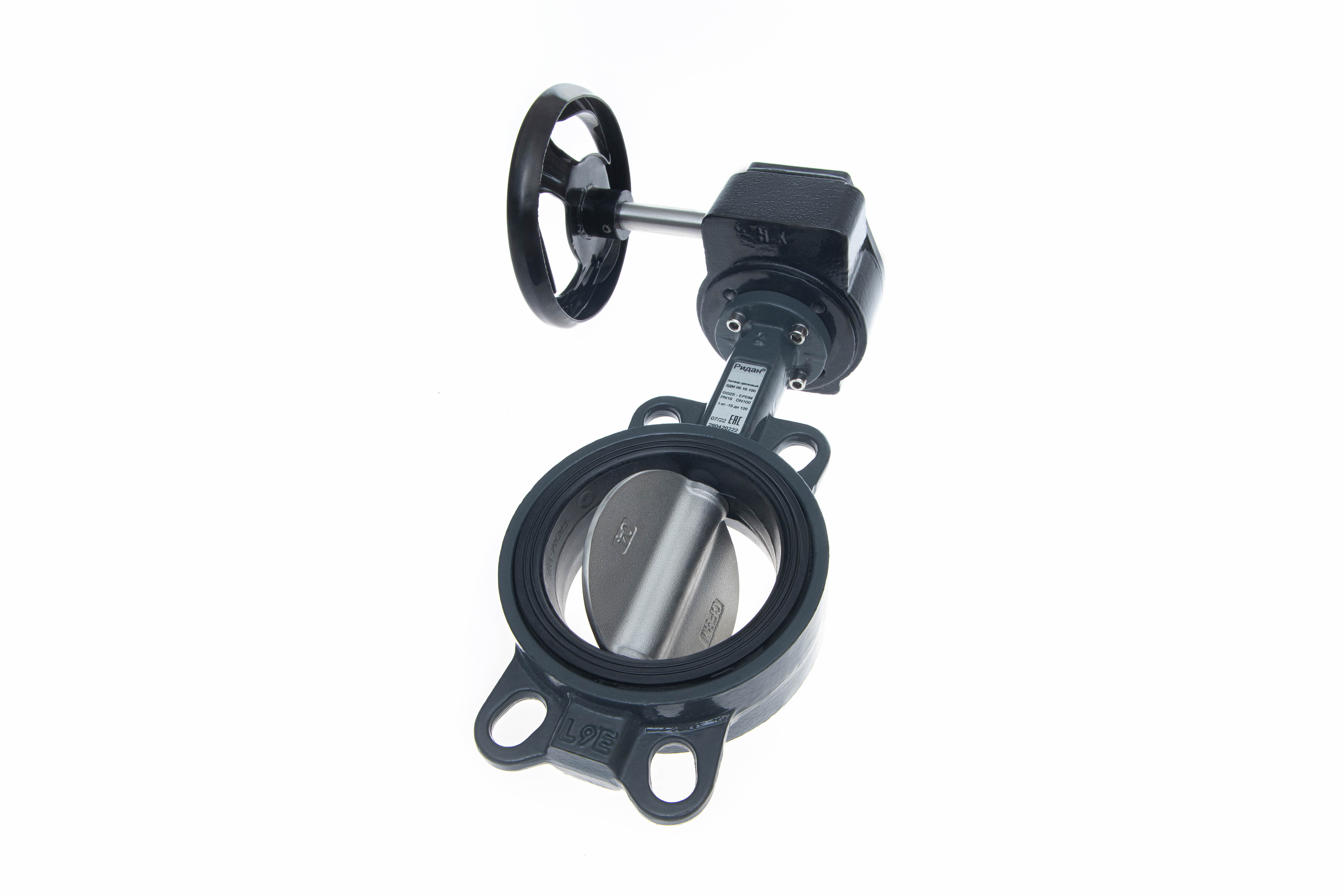 Ридан 082X4439R — Затвор дисковый поворотный ЗДМ 06.16.600, PN16, DN600, корпус GG25, диск — нержавеющая сталь AISI316, уплотнение EPDM, с ручным редукторным приводом