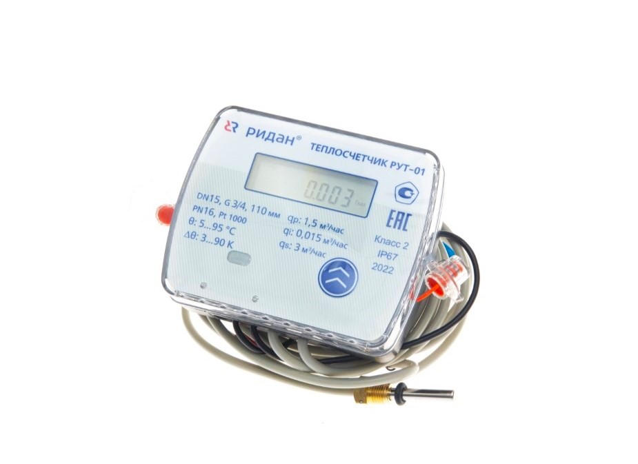 Ридан 187F1945PR — Теплосчетчик ультразвуковой РУТ-01 для учета в системах водяного отопления, DN15, Qp1,5, подача