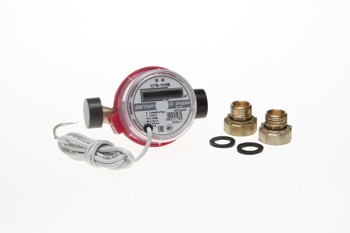 Ридан 187F2045R — Счётчик воды СГВ-15ЭВ RS-485 (L80) с фитингами