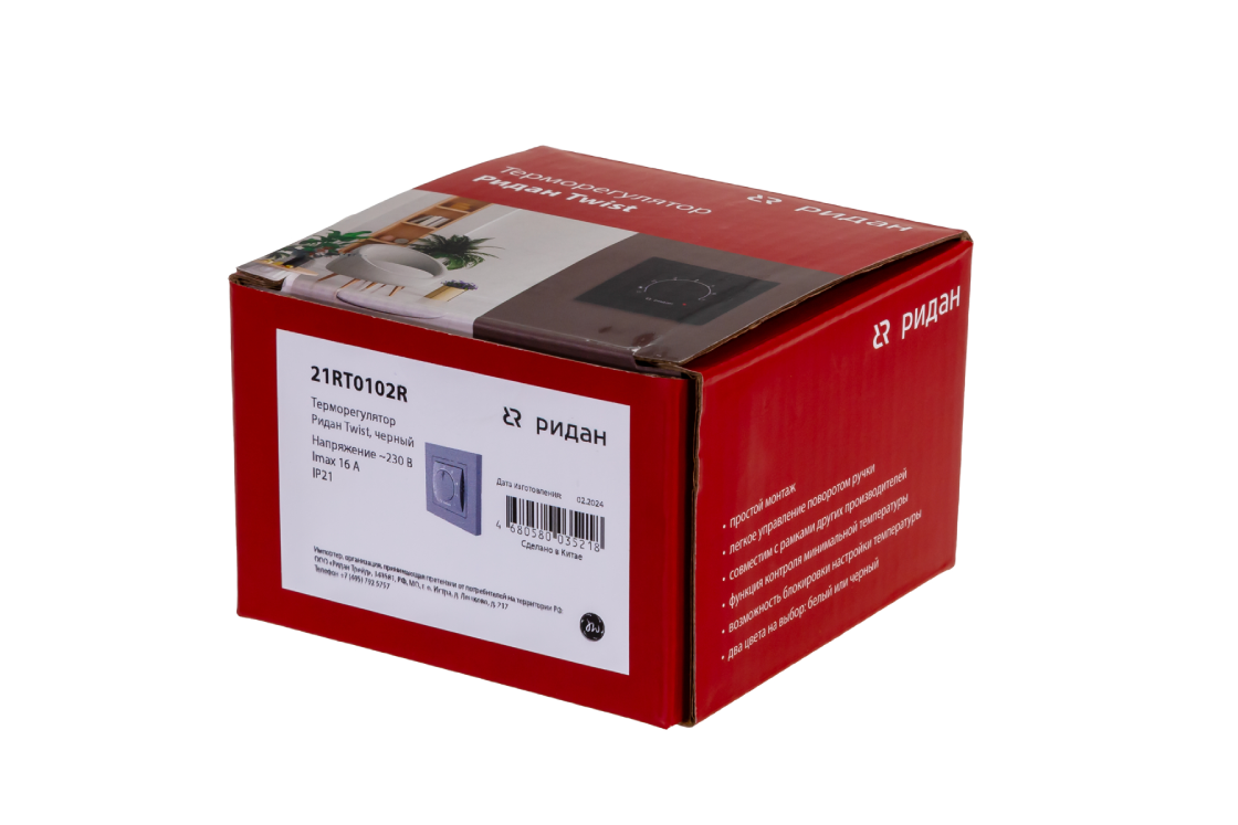 Ridan 21RT1027R — Розничный комплект для теплого пола: нагревательный мат Ridan TF-150 9 м² с терморегулятором Ridan Twist (черный)